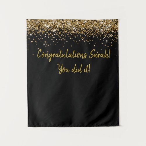 9. Black Gold Glitter Graduation Party Photo Booth Tapestry