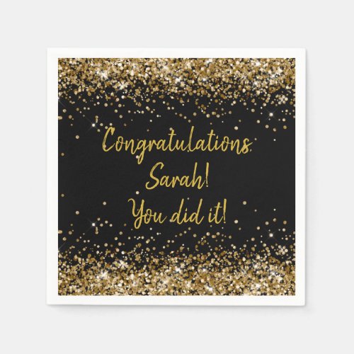 10. Custom Graduation Party Personalized Black & Gold Napkins