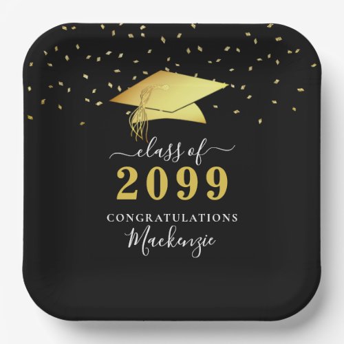 19. Black and Gold Graduation Party Class of XXXX Paper Plates