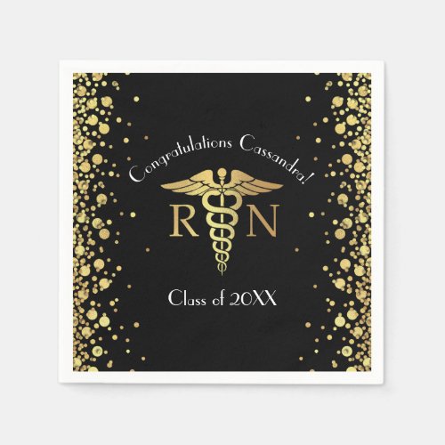 14. Nurse Nursing School Graduation Party Black Gold Napkins