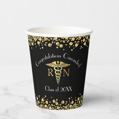 13. Nurse Nursing School Graduation Party Black Gold Paper Cups