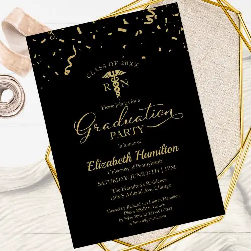 16. Nursing School Graduation Party Black Gold Confetti