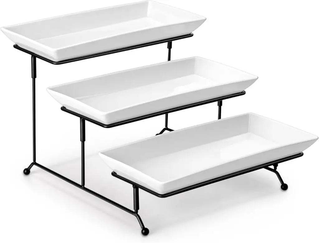 Make your s’mores station picture-perfect with a tiered serving tray filled with graham crackers, chocolate bars, and marshmallows.