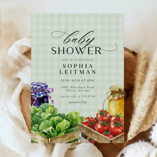 15. Fotografixgal Designs Locally Grown Farmers Market Baby Shower Invitation