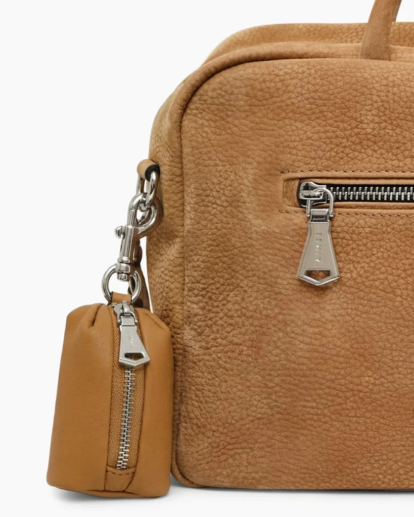 This leather handbag charm keeps your everyday essentials close without adding bulk, thanks to its compact zip design and clip attachment.
