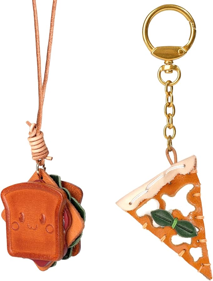 This leather handbag charm adds a fun, unexpected touch with its sandwich design, instantly making your bag stand out.