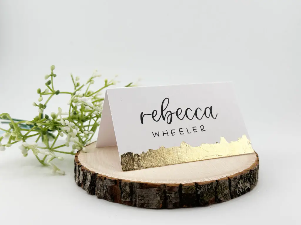 Moon and star designed name cards with guests’ names in metallic calligraphy.