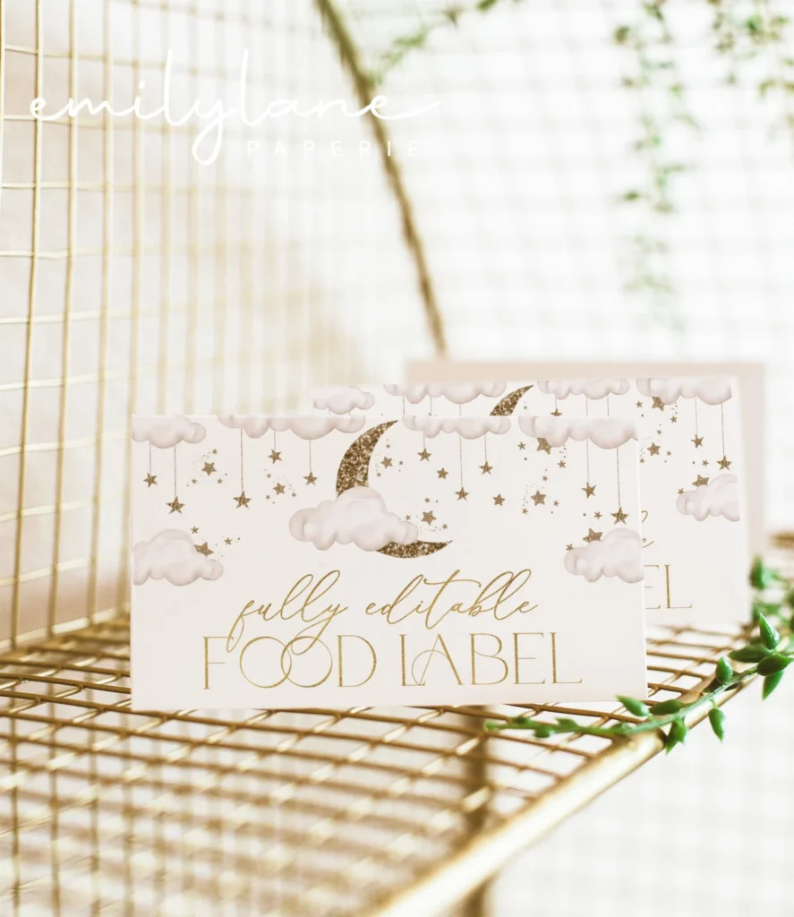 Finish the look with customized Over the Moon name cards or menu printables, adding a personal touch to your setup.