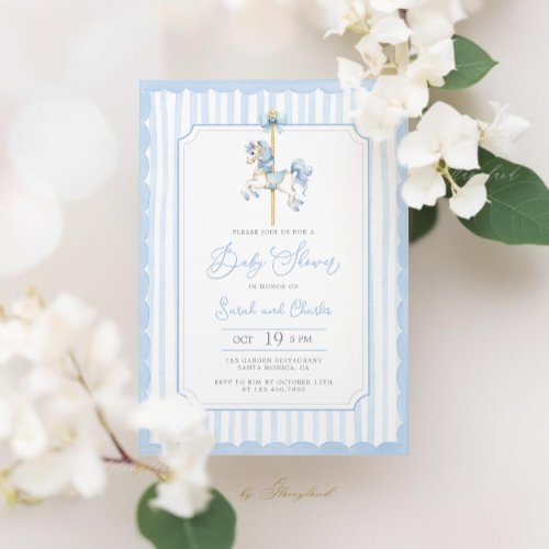 6. Grandmillennial Rocking Horse Baby Shower Boy Invitation