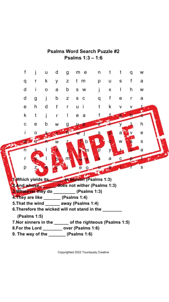 This opening puzzle pulls words directly from Psalms 1, helping you reflect on themes like guidance, choices, and staying grounded while you search through the grid.