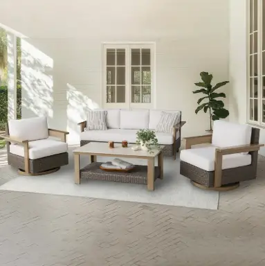 This set brings a clean, structured layout to your outdoor space while still keeping that warm wicker texture. It’s ideal if you want your patio to feel organized, polished, and ready for guests at any time.