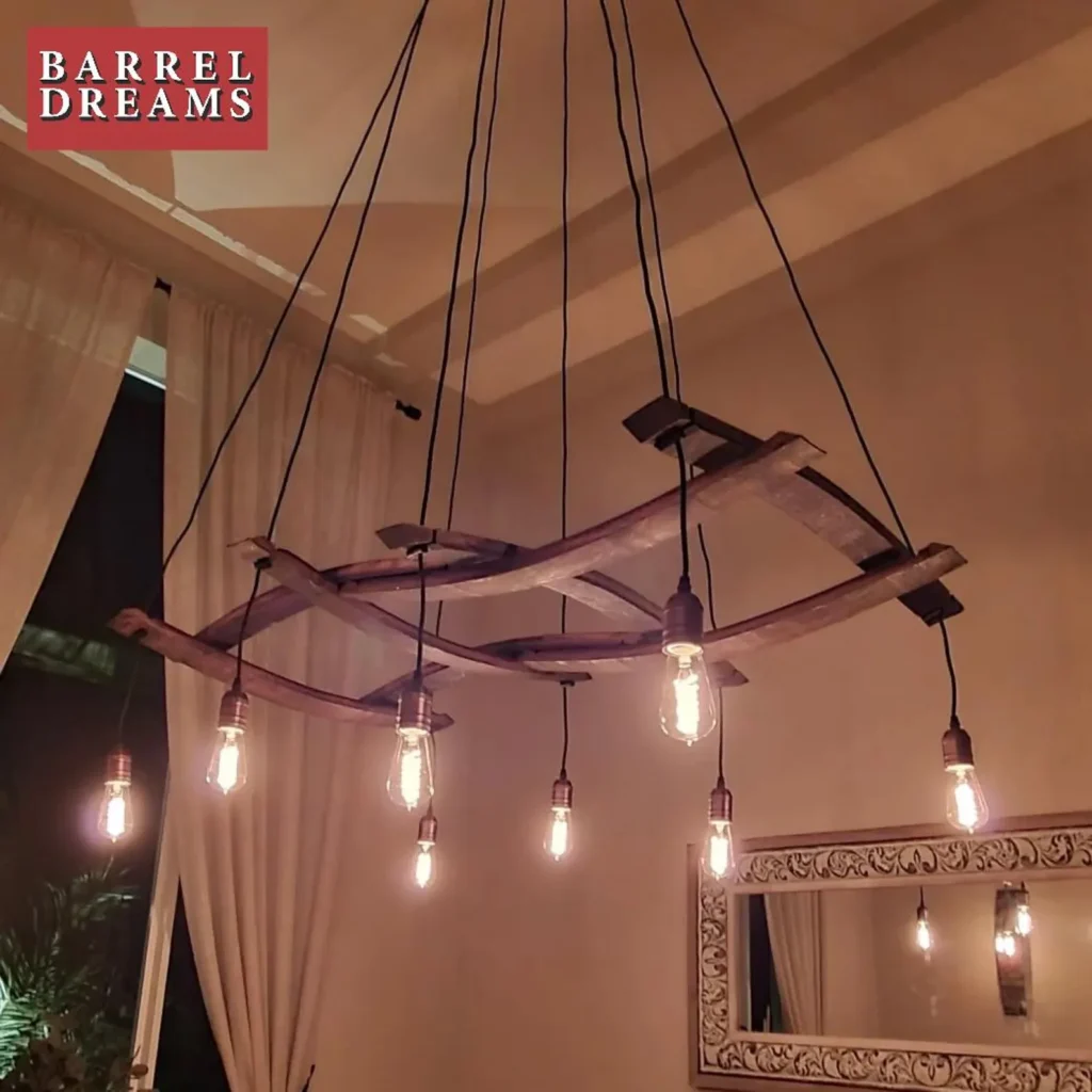 8. BarrelCraftStudio Handcrafted Wine Barrel Chandelier