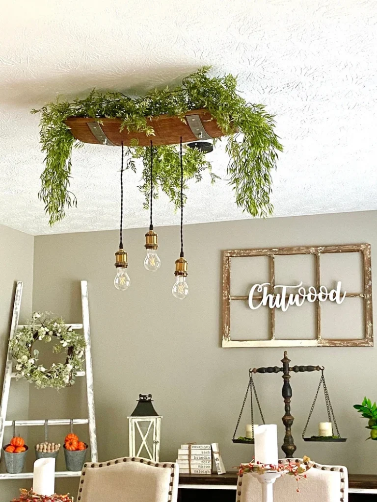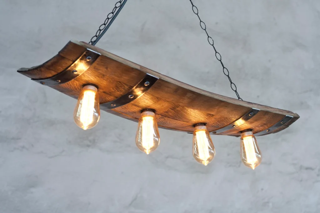 This ceiling-mounted wine barrel light offers a more compact option while still delivering a strong rustic character.