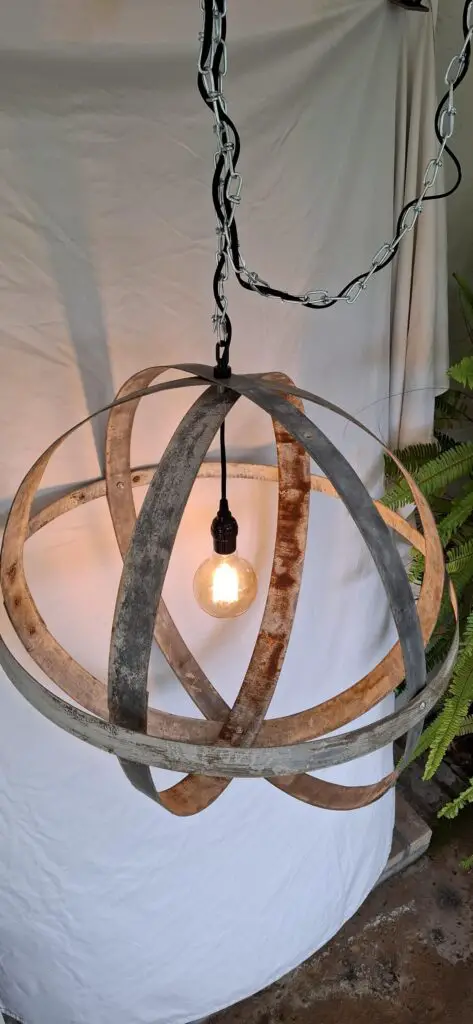 16. SkinnysLightingShop Galvanized Wine Barrel Hoop Light